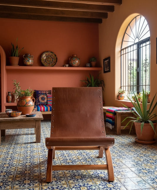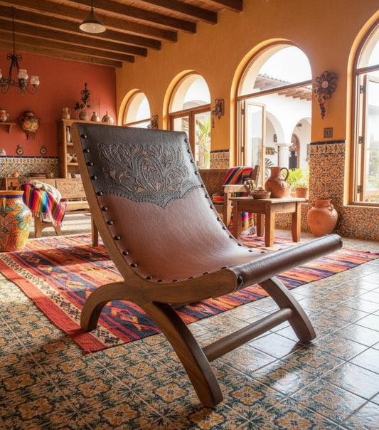 Gran Sillon Miguelito Descanso Piel Mezquite Estilo Antiguo.