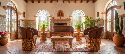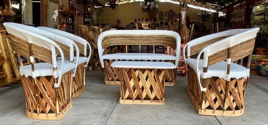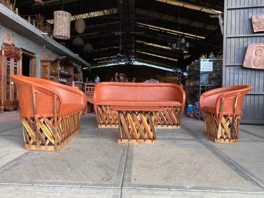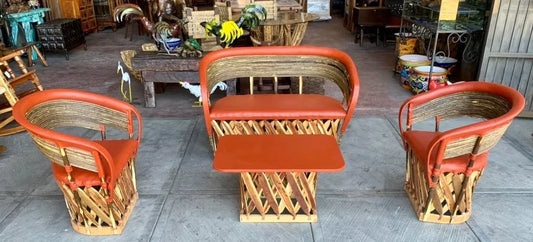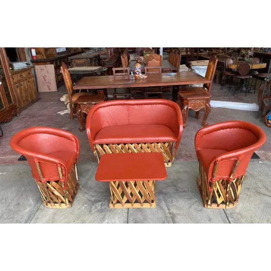 Gran Sala Artesanal De Equipal Madera Y Piel Estilo Antiguo