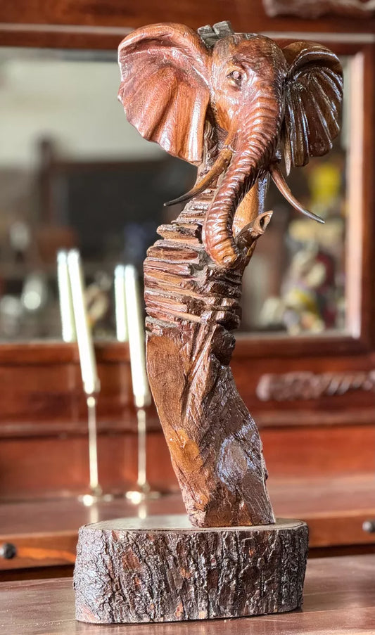 Gran Escultura Elefante En Madera Nogal Estilo Antiguo.