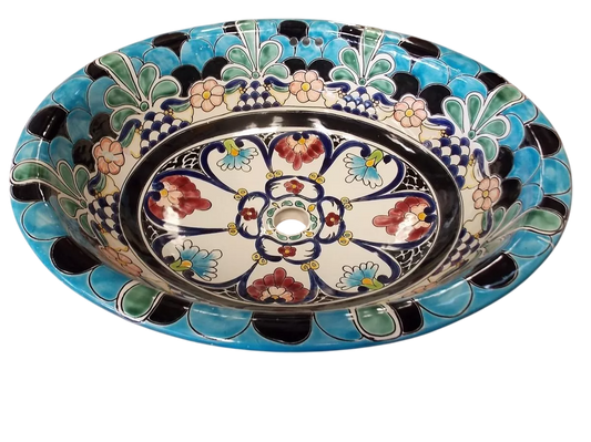Gigante Lavabo Ovalin Talavera Fina Estilo Antiguo. 2mod03