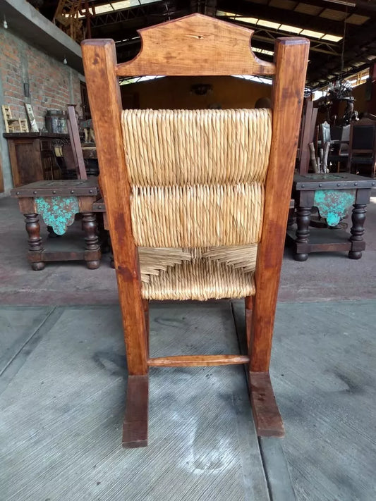 Fuerte Banca Mecedora Balancin Madera Y Tule. Estilo Antigv