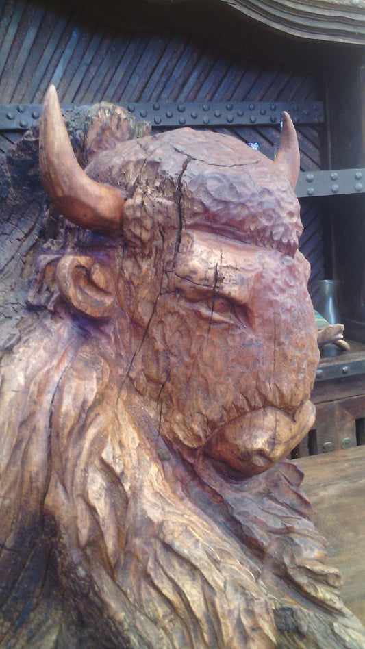 Hermosa Escultura De Bisonte Americano En Nogal.