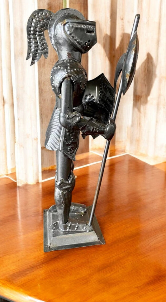 Hermosa Escultura Caballero Medieval En Metal Estilo Antiguo