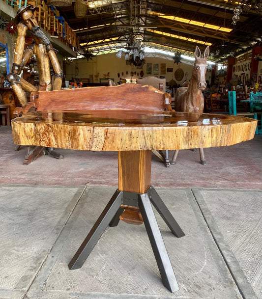 Mesa Comedor Redonda Rodaja Parota 4 Personas Estilo Antiguo