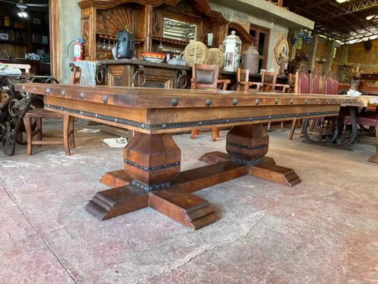 Mesa Comedor para 8 Personas Madera Mezquite Estilo Antiguo