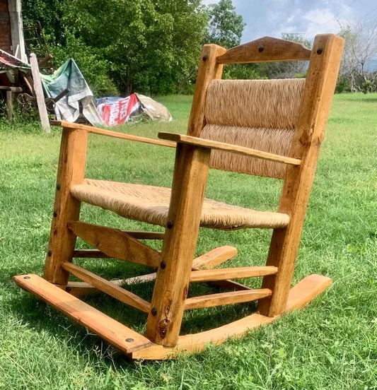 Mecedora Balancin De Madera Sustentable Y Tule. Estilo Antiguo.