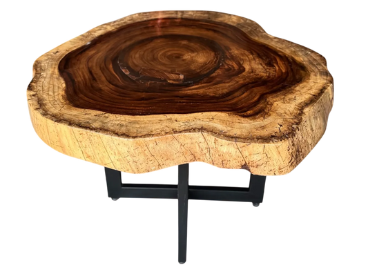 Mesa Comedor Redonda 4 Personas Rodaja Parota Estilo Antiguo