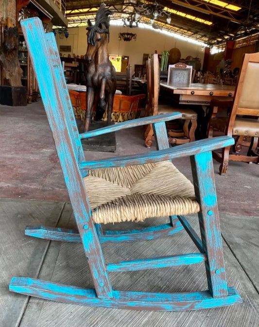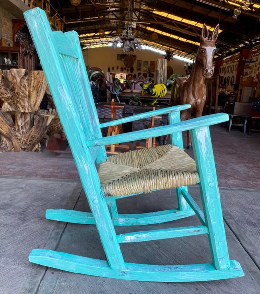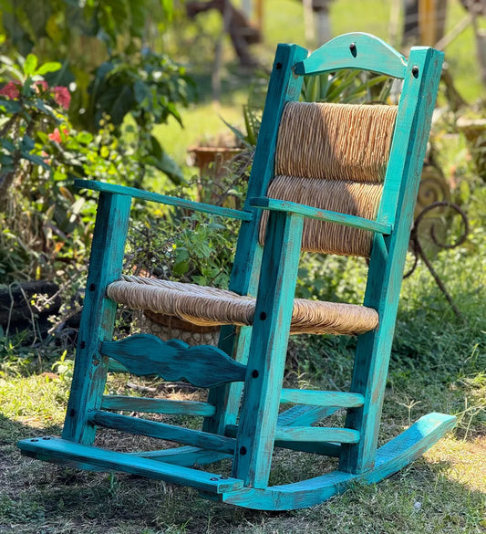 Mecedora Madera Sustentable Estilo Turquesa Vintage.