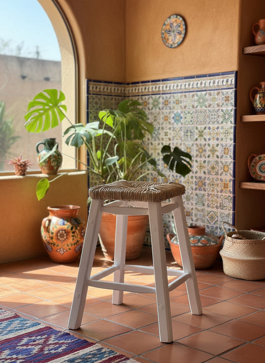 Precioso Equipal Artesanal Blanco Estilo Antiguo Tradicional