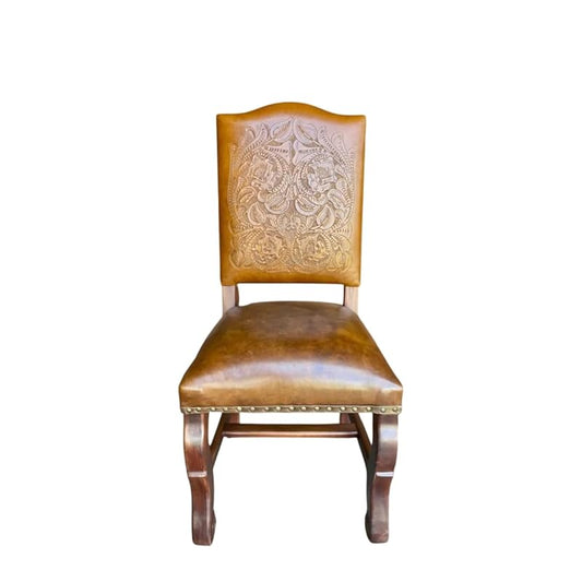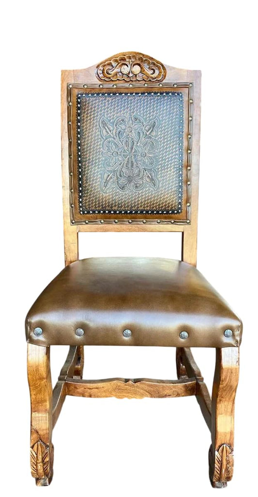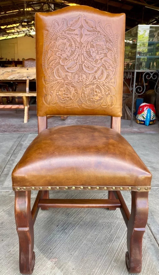 Silla Artesanal De Parota Y Piel Cincelada Estilo Antiguo