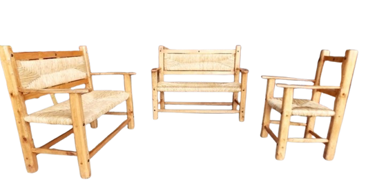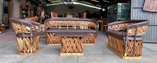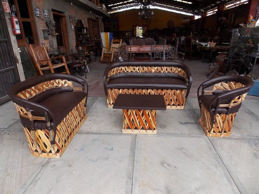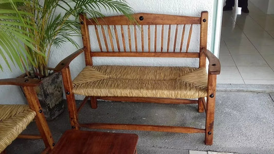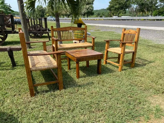 Sala Artesanal Tejida En Madera Sustentable Estilo Antiguo
