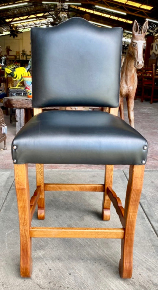 Silla Alta Banco Para Bar O Cantina En Madera Y Piel.