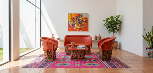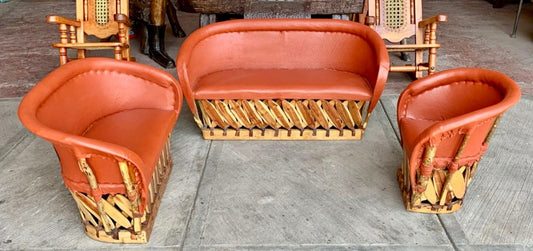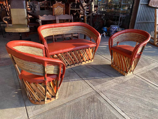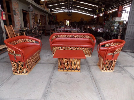 Sala Artesanal Equipal Madera Piel Estilo Antiguo Terracota