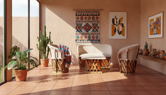 Sala Artesanal Madera Sustentable Y Tejido Estilo Antiguo.