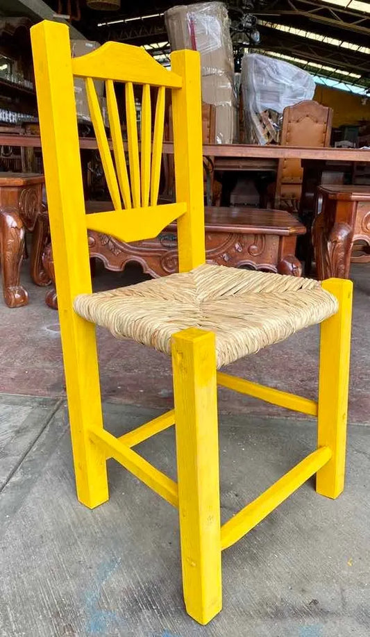 Silla Artesanal Amarilla Madera Sustentable Estilo Antiguo.