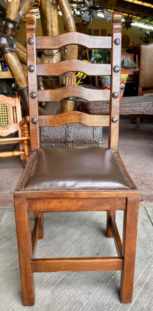 Silla Artesanal Madera De Mezquite Con Piel Estilo Antiguo.