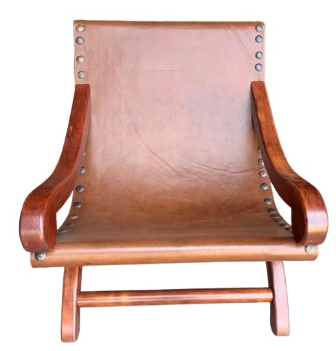 Silla Sillon Equipal Madera Piel Estilo Tradicional Antiguo.