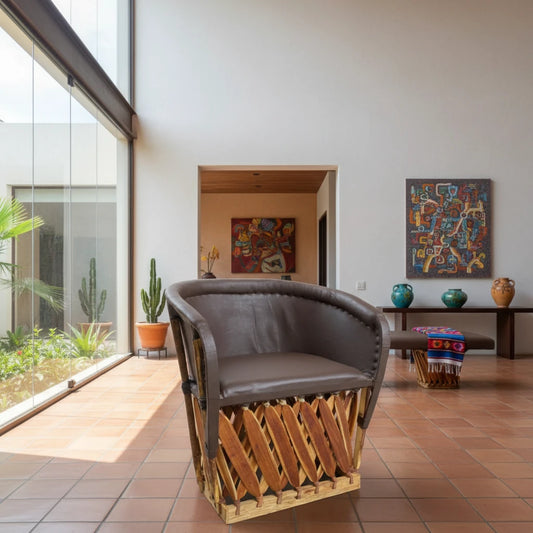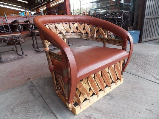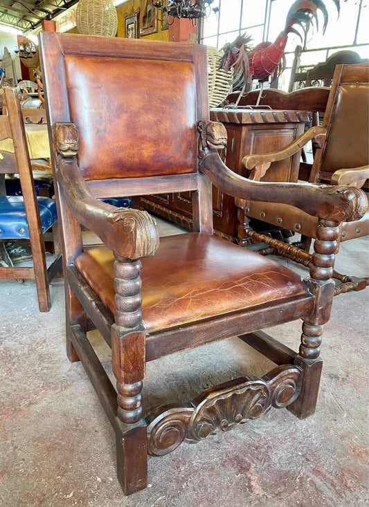 Sillon De Madera De Mezquite Tallado A Mano Y Piel