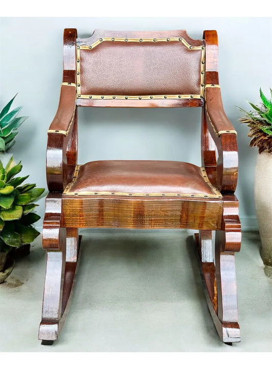 Silla Mecedora Miguelito Piel Mezquite Estilo Antiguo.