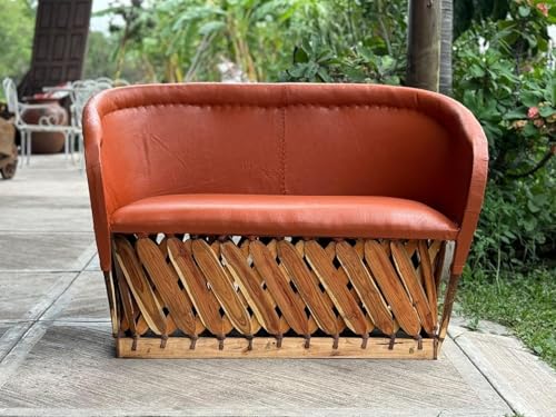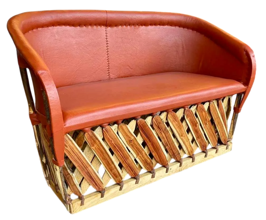Sofa Love Seat Labrado Madera Mezquite Piel Estilo Hacienda.