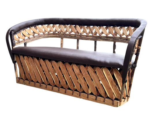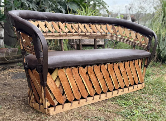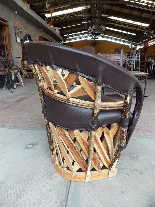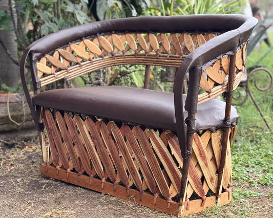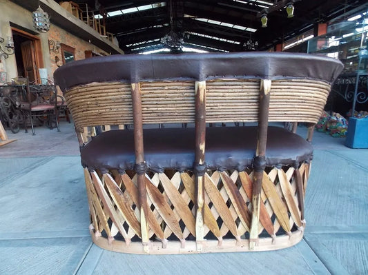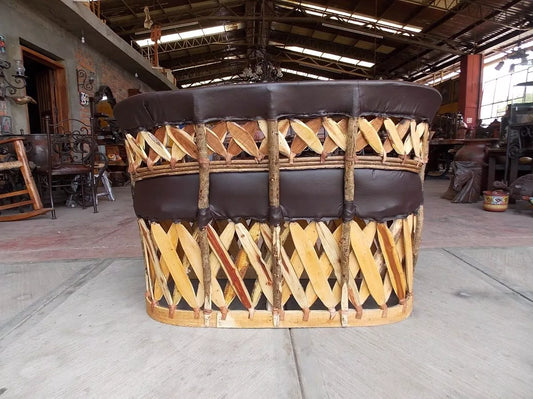 Sillon Love Seat 3 Personas Estilo Equipal Antiguo Estacas. Chocolate Piel
