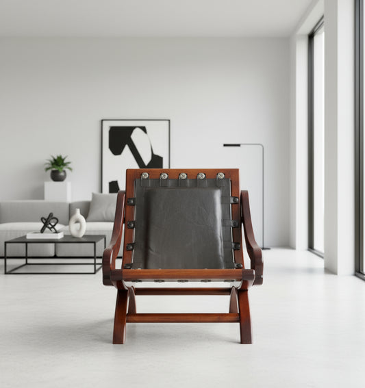 Sillon Equipal Con Riñonera Madera Y Piel Estilo Antiguo