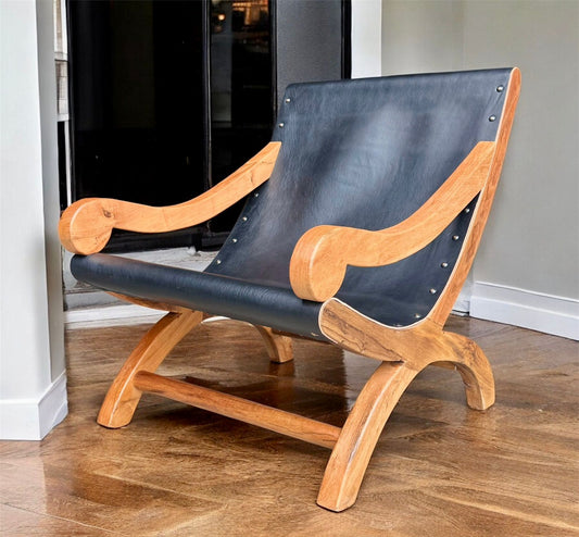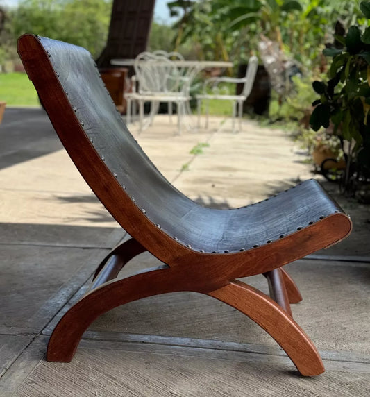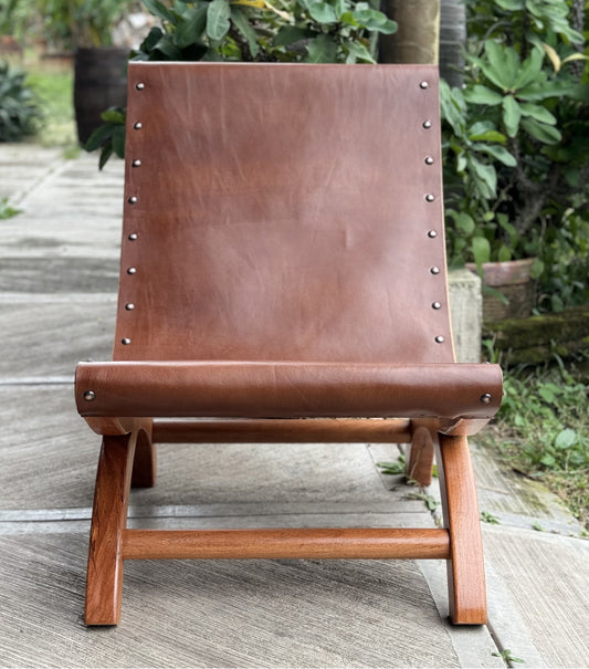 Sillon Miguelito De Descanso Piel Y Mezquite Estilo Antiguo.