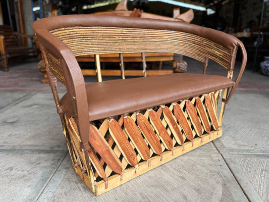 Sillon Love Seat Artesanal Para 2 Personas Tipo Equipal. Marrón Piel Natural