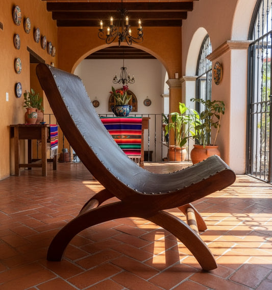 Sillon Miguelito De Descanso Piel Y Mezquite Estilo Antiguo.