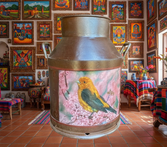 Bote lechero antiguo de Colima, decorado con óleo de ave, cerámica