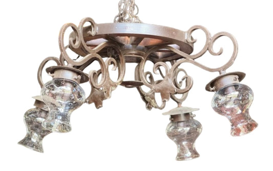 Candil De 4 Luces Rueda En Carreta Mezquite Estilo Antiguo.