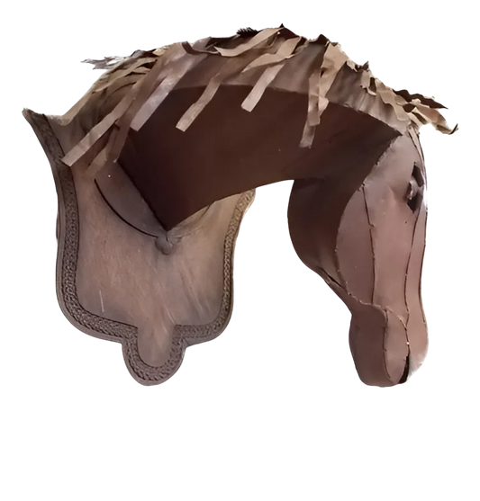Cabeza De Caballo Con Escudo De Madera. Estilo Antiguo.
