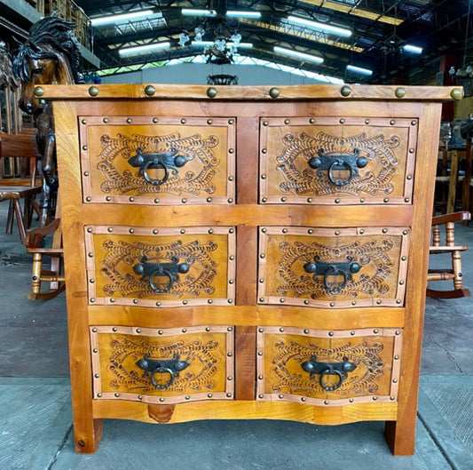 Cajonera de Madera de mezquite con las tallas en el exterior antigua