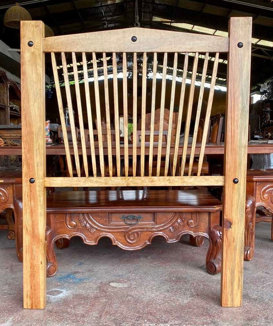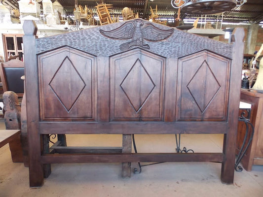 Cama Cabecera De Mezquite Tallada A Mano Estilo Antiguo.