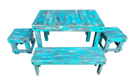 Comedor Artesanal Con Bancas Y Bancos Estilo Antiguo Vintage