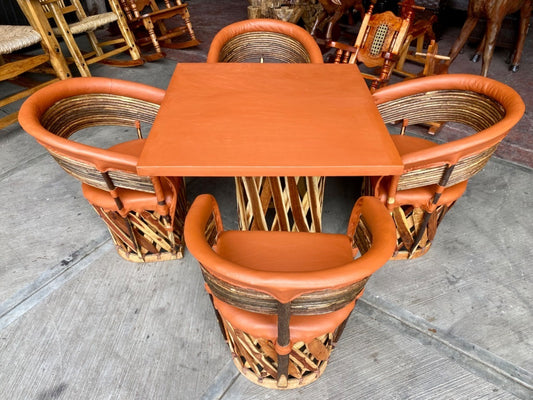 Comedor Artesanal Cuadrado Equipal Estilo Varas Antiguo