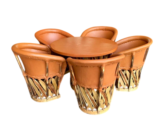 Comedor En Madera Y Piel Estilo Estacas Equipal.
