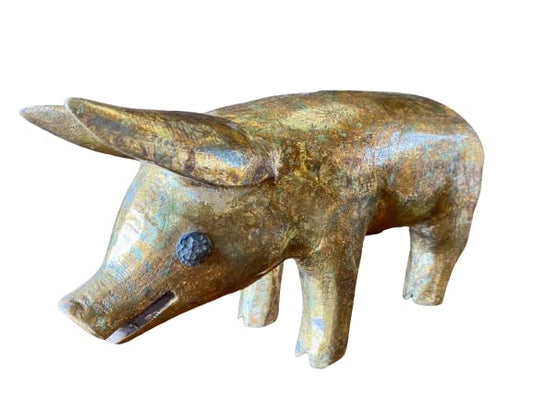 Escultura De Cerdo Puerco Madera Y Oro De Hoja Estilo Antiguo.