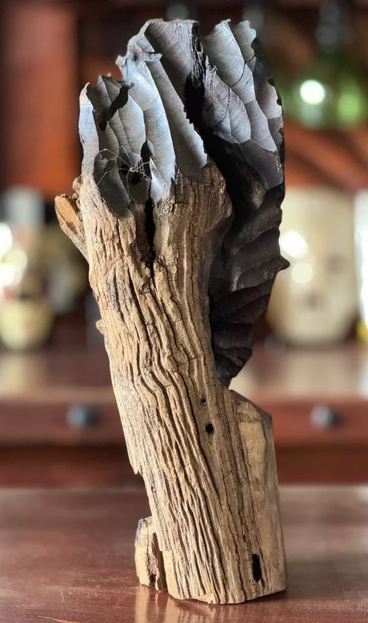 Escultura Hombre De La Tierra Madera Nogal Estilo Antiguo.