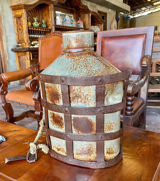 Exclusivo Antiguo Y Original Bote Para Agua Con Reja.