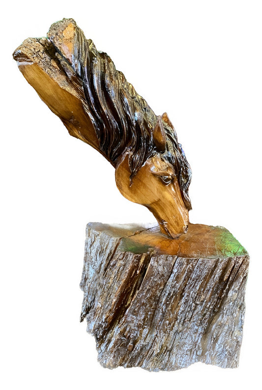 Escultura Caballo Pastando En Madera Nogal Estilo Antiguo.