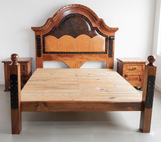 Exclusiva Recamara Mezquite Estilo Colonial Con Piel Y Tallas
