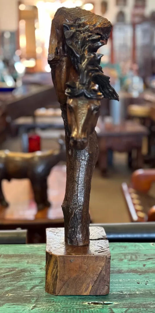 Escultura En Forma De Caballo En Nogal Estilo Antiguo.