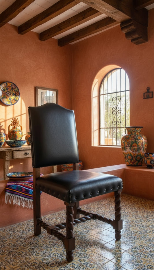 Silla Comedor Madera Mezquite Y Piel Estilo Torzal Antiguo