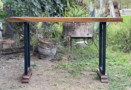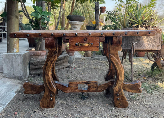 Bella Mesa Credenza Hierro Forjado Y Parota Estilo Antiguo.