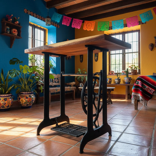Bella Mesa Credenza Con Pedal De Maquina De Coser Antigua