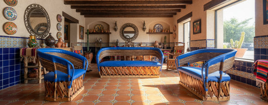 Sala Artesanal De Equipal Madera Piel Estilo Estacas Antiguo