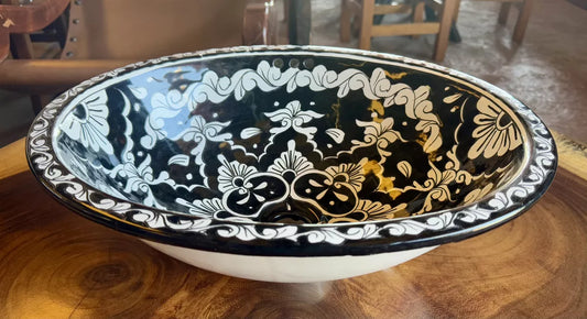 Lavabo Ovalin Talavera Fina Blanco Y Negro Estilo Antiguo