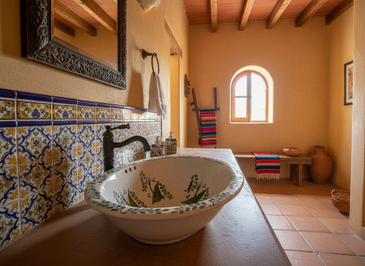 Lavabo Ovalin Artesanal Grande Talavera Estilo Antiguo Oeste