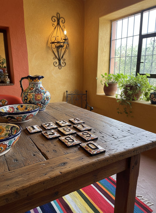 Hermosos Números De Talavera Fina Estilo Antiguo. 2 Piezas